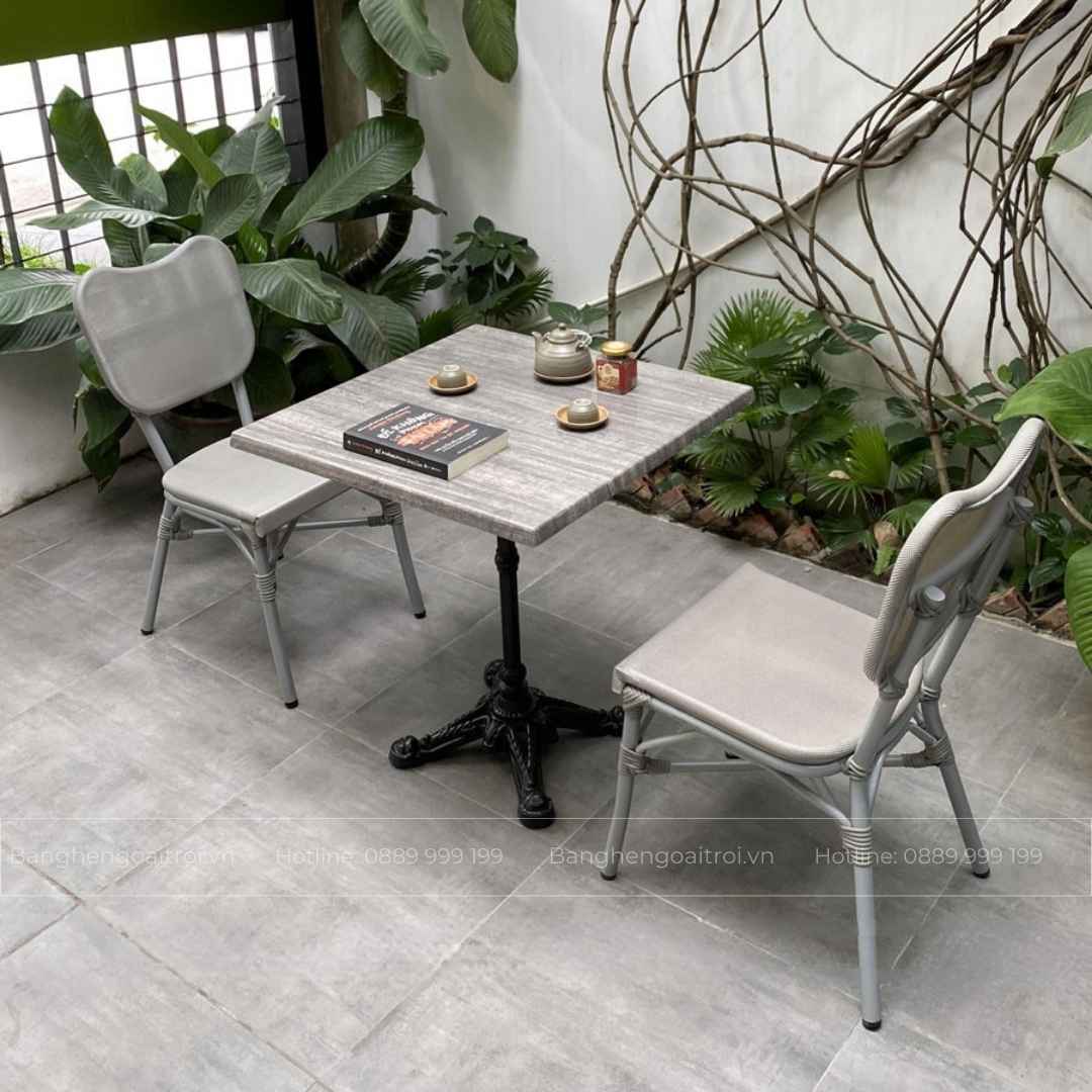 Bộ bàn ghế ban công BC-11 – Nhôm đúc mặt gỗ Resin, phong cách Bistro