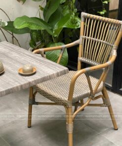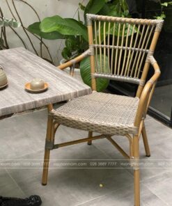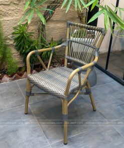 - Chất liệu ghế: Khung nhôm sơn tĩnh điện, đan sợi nhựa giả mây