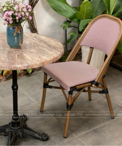 Ghế của bộ bàn ghế cafe ngoài trời BTL-GC15D được làm từ khung nhôm sơn tĩnh điện, giúp chống oxy hóa và đảm bảo độ bền cao. Mặt ngồi và lưng tựa được làm từ lưới Textilene, một chất liệu thoáng khí và kháng nước. Điều này không chỉ mang lại sự thoải mái khi ngồi mà còn giúp bộ ghế dễ dàng chống lại những tác động của thời tiết và môi trường ngoại vi.